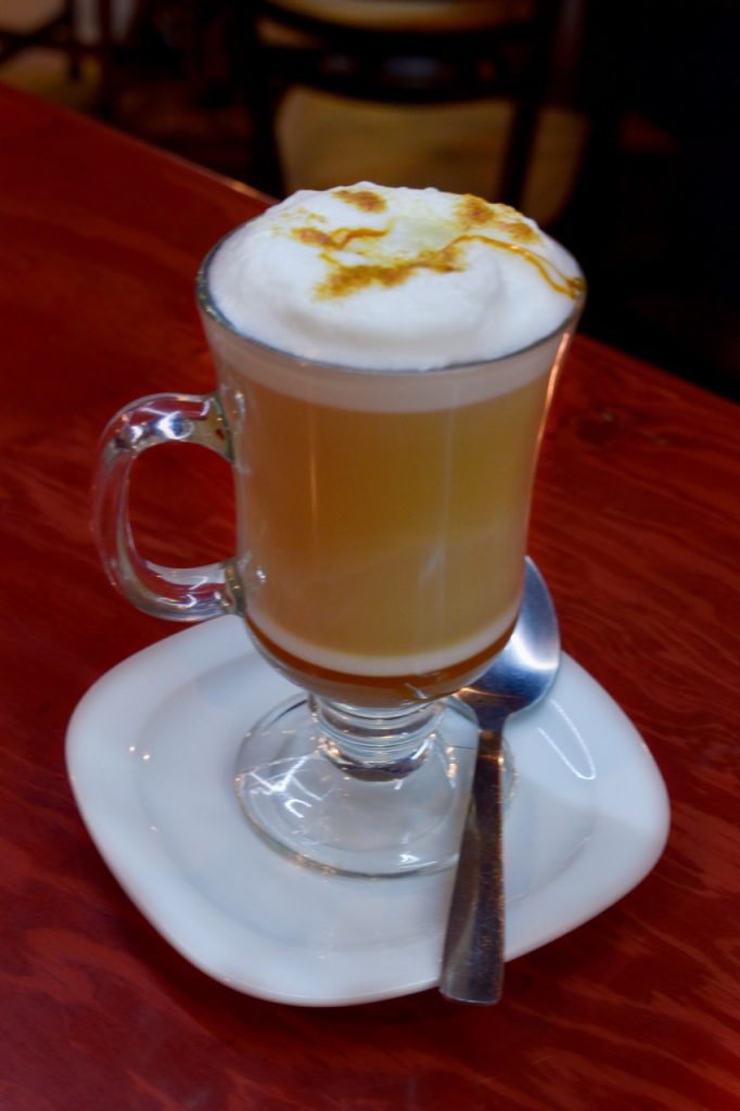 Preparado con leche, café de grano molido y saborizante de cajeta